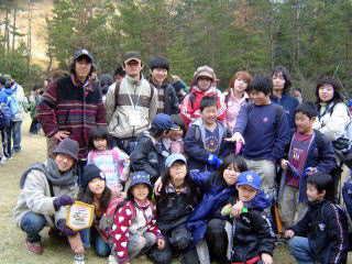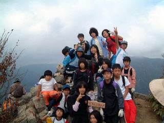 | どろんこクラブでは、秋のこの時期、仲間同士の団結と交流、高学年としての力を試すことなどを目的に、登山を行っています。今年は児童と父母,指導員,父母OBら42名で鈴鹿山系の藤原岳に登りました。 この日は絶好の好天に恵まれ、脱落者も無く安全に登山を終えることができました。 |