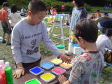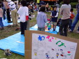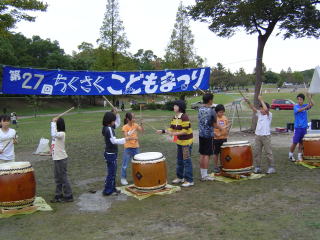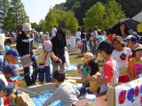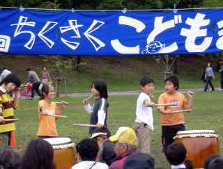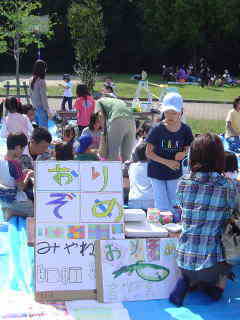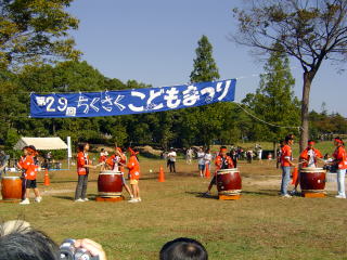 | すばらしい晴天の下、第29回千種区こどもまつりが開催されました。 子どもたちは、手作りのゲームコーナーや太鼓演奏などでおまつりを盛り上げる一方、おこづかいを手に、バザーやおやつなど、あちこちのお店を回り、秋の一日を楽しみました。 |