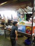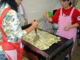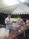 氷やわたがし、チヂミなどの模擬店を出店しました。たくさんのお客さんが来てくれました。 ←わたがしづくりにフル回転中のK会長 |