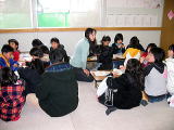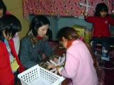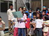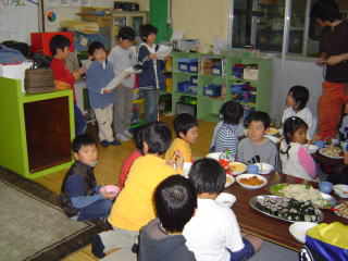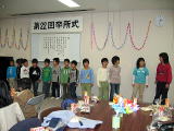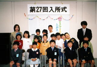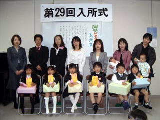 | 6人の元気なともだちを新たに迎えて、2006年度の入所式が行われました。 新5年生が中心に式を進め、手作りのプレゼントや歌でお祝いをしました。 新入所のみなさん、学童での新しい生活を思いきり楽しんでください。 |