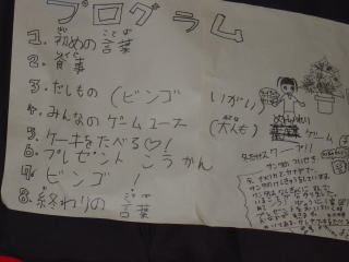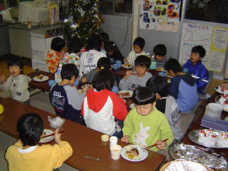 | 毎年子どもたちが楽しみにしているクリスマス会が開かれました。 食事、飾りつけ、楽しいゲームや出し物、全てが手作りの楽しい会でした。 |