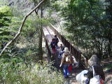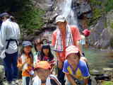 低学年のハイキング。 途中でクイズに答えながら「白水の滝」まで歩いて行きました |