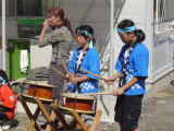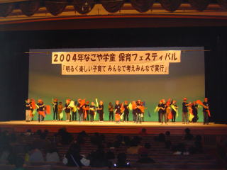 会場前では、地元学童の子どもたちや父母によるパフォーマンスが行われました。写真は芸達者な陽明学童(名古屋市)のみなさんです。 |