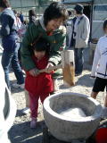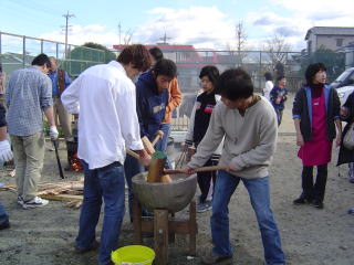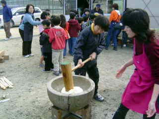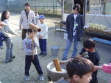 | 昨年末の大雪で中止となったもちつき大会が、年をあらため開催されました。すばらしい晴天の中、みんなでたくさんのおもちをつき、おいしくいただきました。 | ||