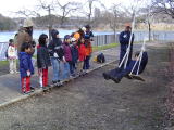 | 親子で歩きながら自然を楽しむ、第14回親子冒険ウォークラリーが、千種区連協の主催で開催されました。 区内13学童保育所の子どもと保護者約450人が参加しました。 6ヶ所のポイントでクイズに答えてスタンプをもらいながら、他のグループの子どもたちとも色紙に寄せ書きをし合うなどして、親交を深めました。 |