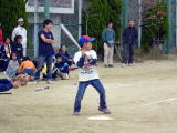 攻撃では、児童が冷静にフォアボールを選んで(ストライクゾーンが狭いのでピッチャー泣かせです)得点に結び付けるムダのない攻めで相手を翻弄。 |