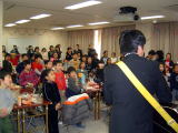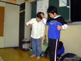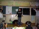 | 開会のあいさつです。 男子の出し物はこま回しにヨーヨー、お笑いもちょっぴり披露してくれました。 |