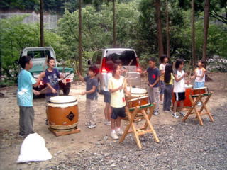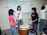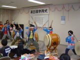 宮根学童では「おりぞめ」、千代田橋学童では「ボーリング」と「わなげ」を用意し、子どもたち自身がお客さんのお相手をしました。また、ステージ上では得意の太鼓演奏も披露しました。