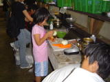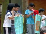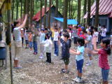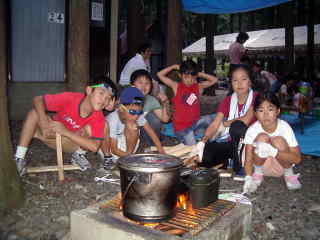 | 高学年児童29人が、春日井少年自然の家で合宿をしました。 雨のため、お楽しみの「きもだめし」は中止でしたが、夕食のカレーライス作りやクイズラリーなど、宮根と千代田橋の子どもたちが協力し合い、楽しく過ごしました。 合宿中は、6年生がリーダーシップを発揮して下級生を指導してくれたそうです。 |
