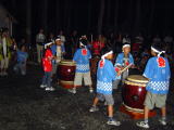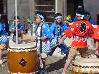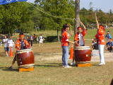 高学年は、そろいのハッピを着て太鼓演奏を3曲披露しました。カッコいい! |