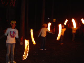 | お母さん有志のハンドベルでキャンプファイヤーがおごそかに始まります | ![]() |