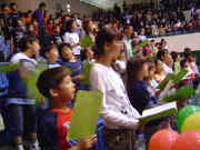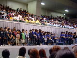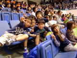 2階席で開会を待つどろんこの子どもたち。 「出番まだかな〜」 |
