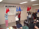 | 第23回卒所式が香流橋地域センターで行われ、3名の児童がめでたく卒所を迎えました。 当日は、下級生から歌やカラーフラッグなどの出し物が披露され、卒所児童を祝いました。また、卒所児童からは卒所旅行のスライド上映、作文の披露などがあり、6年間の学童生活を振り返りました。 卒所のみなさん、おめでとうございます。中学校でもがんばってください。 |