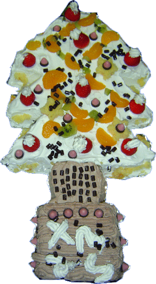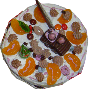 | クリスマスケーキは、ほとんど子どもたちが作ったものです。昨年と違い、たいへんおいしく楽しいできばえでしたので、ご披露したいと思います(念のため。昨年砂糖と塩を間違ったのは子どもたちじゃありませんから!) | |