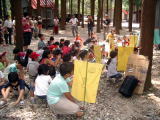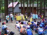 開村式の様子。 各班が「キャンプの目標」を発表しました |