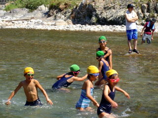 1日目は最高の晴天。 大人もはしゃいだ川遊び |