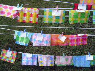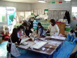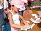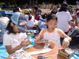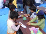 | おりぞめコーナー→ 「こういう具合に折るんだよ」と高学年が優しく教えていました |