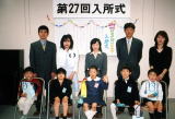 どろんこクラブのピカピカの1年生たち。今年も多くの仲間や地域公職者の皆さんとともに、入所式を行ないお祝いをしました。式の進行は新5年生が司会を行い、手づくりのプレゼントを渡したり、歌を歌ったりしてお祝いしました。