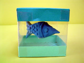 | 大人気の工作「宙に浮く金魚」。ちなみに右は「宙に浮くかつお」とのこと。→ どういうしかけかわかりますか? |