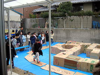 | 今年初登場の「ダンボール迷路」。準備はすごく大変だったけど、大好評!!頑張ったかいがありました。→ | ![]() |