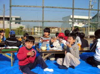 学童・父母・OB合わせて100名を超える参加者が,つきたてのおもちや豚汁,焼き鳥などをほおばりつつ,楽しい時間を過ごしました。
