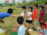 どろんこクラブでは毎年自転車教室に取り組んでいます。まだ自転車にのれない1年生を、上級生が手とり足とり励まして教えます。「やったー!のれたー!」1年生のうれしい声。上級生の存在がぐっと身近になり、頼もしく思える瞬間です。みんなでサイクリングも行きました。 |