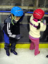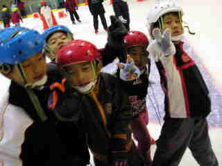| 初めてスケートをやる1年生たちも、高学年や滑れる仲間に手を引いたりしてもらいながら、ほとんどが1日で氷の上に立ち、何とか滑れる(?)ようになりました。 | |