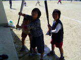 | 千種区内の学童との交流を目的に、区連協ソフトボール大会が開催されました。 あいにくの曇りで、時折雨がポツポツと頭の上に降り付ける中、宮根・千代田橋学童合同チームは、指導員・父母・児童が力を合わせて、見事「準優勝」を勝ち取りました! |