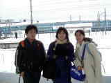 普通列車でのんびり行きます。 右は雪の米原駅。 |