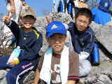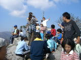 お父さんお母さんたちも日頃の疲れをものともせずがんばりました。 すばらしい天気で、山頂での眺めも最高でした。 |