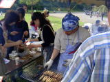 最終日 小雨の中の朝食準備。ホットドッグの出来は? |