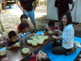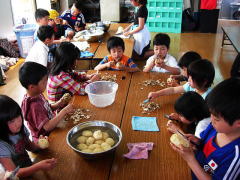 | 1年生とR君が入所して3週間がたとうとしています。色々な保育園から入所してきた仲間達ですが、3週間の間にすっかり仲良くなり、学童の生活にも随分慣れてきたようです。ということで先週からナイフ教室をはじめました。最初に鉛筆削りをし、二日目からは、じゃがいもの皮むきをやっています。 最初はなかなかコツをつかむことができず悪戦苦闘していましたが、少しずつ慣れてきて薄くむけるようになってきました。昨日は3回目のじゃが芋の皮むきでしたが、薄くむこうとするとどうしてもとても時間がかかってしまい、3個の皮をむくのに一時間以上かかる子も・・・。 「なんでナイフ教室なんかやらんといかんの?」とため息をつきながらも、頑張っている仲間達です。初日はポテトサラダ、2回目はお焼き、そして昨日はコロッケ風お焼きにしてみんなでおやつに食べました。みんながスムーズにむけるようになるまで、まだまだナイフ教室は続きます。 |