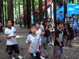 | キャンプに向けての新しい班決まる! 8日(火)、キャンプに向けての新しい班作りのための「班長決意表明」を行いました。Nちゃんはこの日お休みだったので、K君・Mちゃん・Hちゃんが決意表明を行いました。Nちゃんの目標は指導員が代読しました。今回は2回目ということで3人とも恥ずかしがらずにしっかりと目標を言うことができました。みんなに「何か質問はありませんか?」と聞いたところ誰も質問する子がいなくて、Kちゃんが「いいんじゃないの!このメンバーなら」と言ってくれたので、「4人に班長を任せてもいいと思う人は拍手をして下さい!」と言うと、みんなが拍手をしてくれました。そこで指導員が考えた新しい班(今回はキャンプの班という事で父母の参加状況も考慮しなければならないために指導員で考えました。)を発表したところ「また○○と一緒だ!」と言う声も一部にはありましたが、みんな納得してくれて、さっそく班ごとに話し合いをして班の目標と名前・色を決めました。この班でキャンプに向けて、みんなで力を合わせて、様々な取り組みを行っていきたいと思います。 |