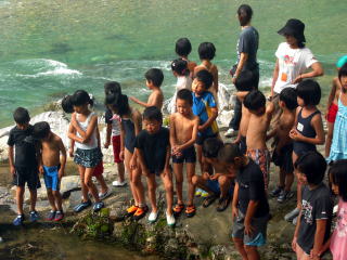 | 5月9日に第1回のキャンプ実行委員会が行われ、今年のキャンプの企画について子どもたちからアンケートをとって考えていくことになりました。 まず、1年生の子達にもキャンプのイメージをつかんでもらうために、昨年のキャンププログラムを出して、それを見ながら、どろんこキャンプについて色々説明しました。 話が始まると、2年生以上の子達は「そういえばやったねえ去年花火!」とか「2年生は知らんよ!だって去年川遊びできんかったもん!」など去年のキャンプのことを思い出して、色々と発言がありました。 バンガローの説明のときにも「この部屋よりも〜っと狭いんだよ!」とかマスづかみでは「おいしかったよ!」など様々な発言があり、1年生にもキャンプのイメージが伝わったのではないかと思います。 |