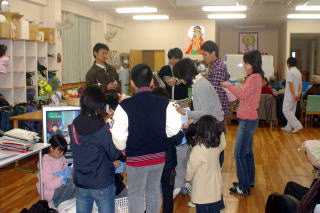 | 午後2時頃からデイサービス千代田橋を訪問し、人形劇とこまを披露しました。参加は子ども8人、大人5人、指導員1人。子どもの人数が少なかったため、きゅうきょKパパ・Gママ・Tママにも出演をお願いしました。デイサービスに行くと30人ほどのお年寄りが体操中。少し待った後、学童の出番でした。 子どもたちが出て行くと、お年寄りの皆さんはそれだけで大喜びされ、セリフや人形の動きひとつひとつに手をたたき、笑い声を上げて喜ばれていました。子どもたちもいい演技をしてくれました。3人のパパママも見事な演技で対応していただきました(ぶっつけ本番ですみません)。 人形劇のあと、こまの演技にも大注目。成功しても失敗しても拍手拍手。これだけ喜ばれると、本当に訪問してよかったなあと感じました。子どもたちも、人のために役立つこと、何かしてあげることの大切さを感じたのではないでしょうか。 帰り際、おばあちゃんたちから「また来てね〜」と手を振ってお別れ。思わずSくん「バイバ〜イ。また来週ね!」。ぜひまた訪問して交流したいなと感じました。 ![]() |
