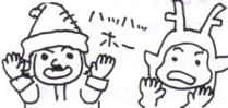 ★12月24日(水) Sクリニックデイケア訪問 Kママの職場を訪問。送迎バスに乗せられてもらいテンションのあがるみんな。大勢のおじいちゃんおばあちゃんの前で、人形劇とこまの技を披露し、いっしょにクリスマスソングを歌い、大きな拍手をうけました。終了後、センター長さんからお菓子やジュース、図書券までいただきました。 ★12月25日(木) 劇団うりんこ「ちょびひげのサンタクロース」 午前中から宮根に行き、ドッジボールなどで楽しく交流。劇は見習いサンタとトナカイの友情を中心に「子どもたちがサンタを信じる気持ち」を訴える内容でしたが、ギャグもちりばめられて楽しく、どんどん劇に引き込まれていたようです。 |