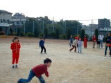 ★12月22日(火) 野球交流 VS自由ヶ丘学童 やる気まんまんで迎えた野球交流。自由ヶ丘の子どもたちが河川敷に現れると、千代田橋のメンバーは一列に並んで「よろしくお願いしま〜す!」。先発ピッチャーRくんの速球に相手チームは三振の山。時々転がるゴロも上手くアウトにするみんな。千代田橋の攻撃はフォアボール・ヒットでどんどん得点。満塁のチャンスにSくんのフライは相手のエラーもあり満塁ホームランに!「おれ、はじめてホームラン打ったよ〜!」。みんな大活躍して13対5で勝利でした。試合に出ない女の子たちもポンポンを作ってかわいく応援してくれました。 |