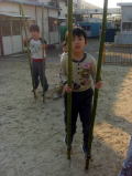 ![]() 竹馬あそび。みんなは乗れる? |